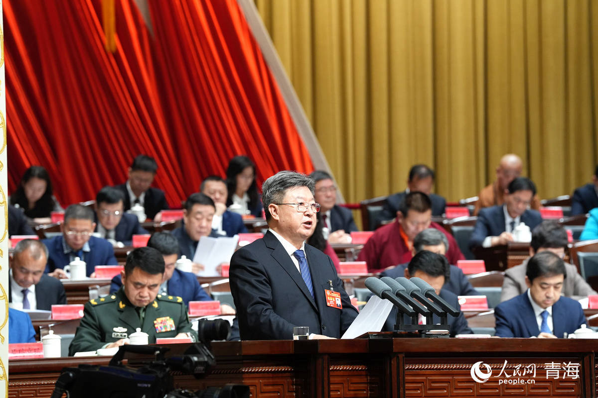 青海省政协主席公保扎西作报告。人民网记者 杨启红摄